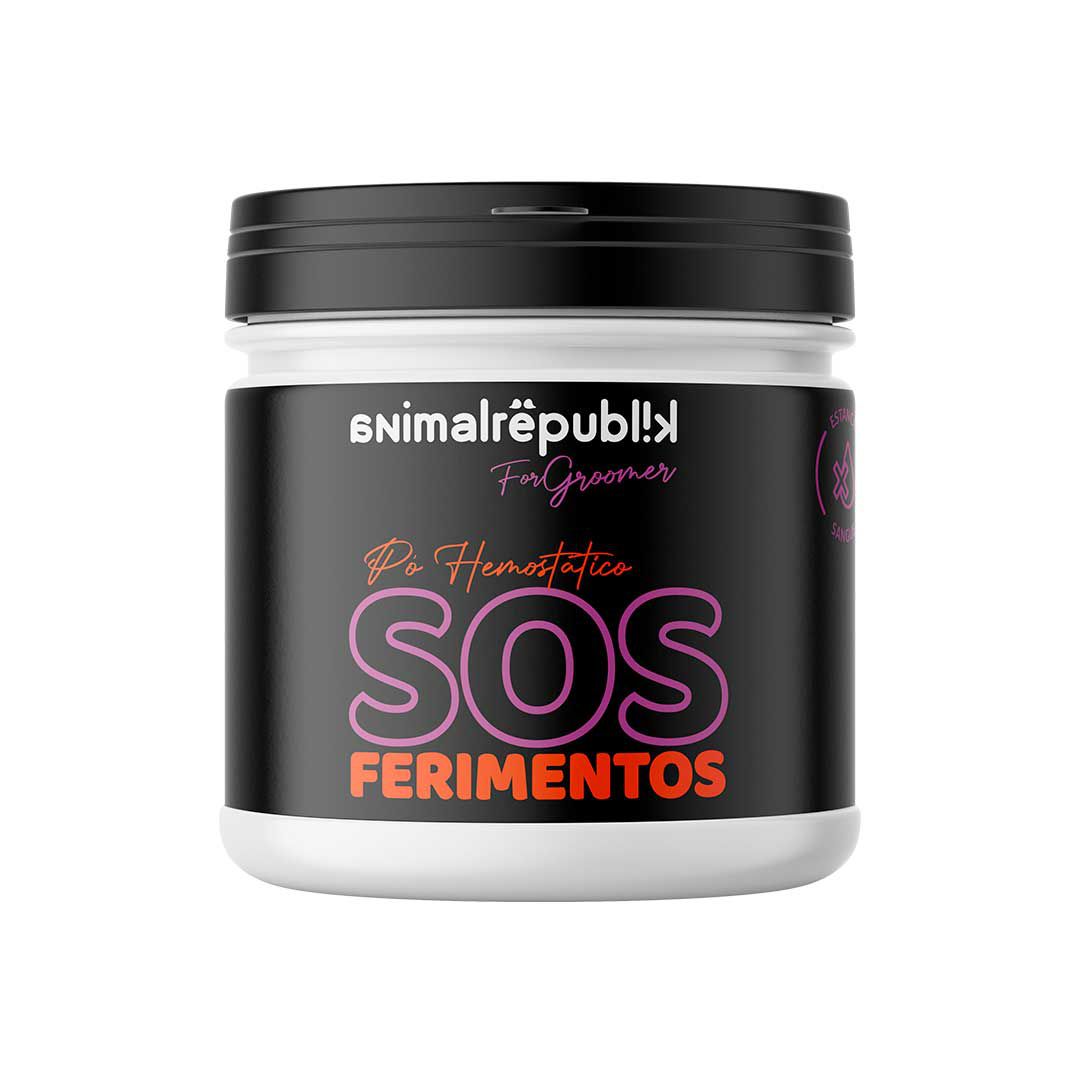 SOS Ferimentos é um pó hemostático coagulante que estanca o sangue de pequenos ferimentos que podem ocorrer durante o corte de unhas ou tosas.